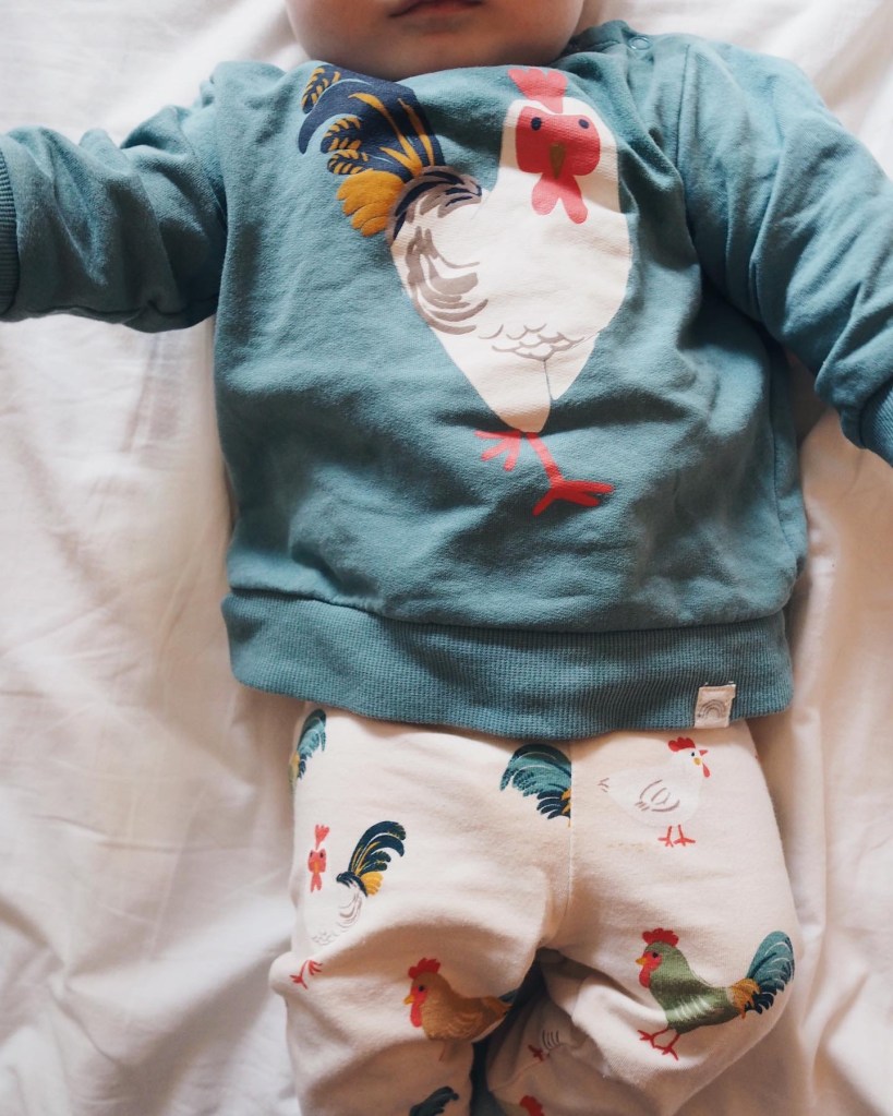 Bebisens påskoutfit, som självklart spyddes ned samma sekund som han fick den på sig. Det är typiskt, för annars kräks han aldrig.