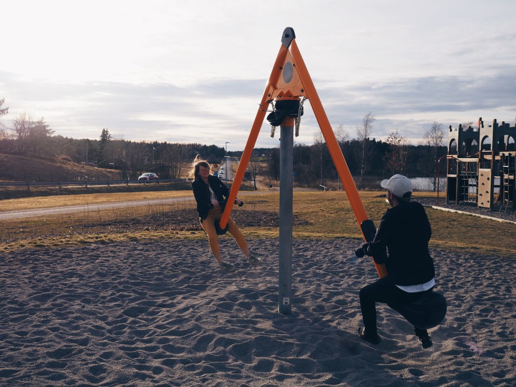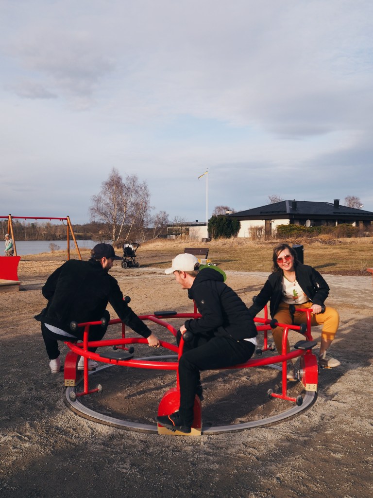 Vi stannade också vid en lekplats som kommer vara jätterolig för bebisen om ett par år, och som tydligen var jätterolig för de vuxna nu.