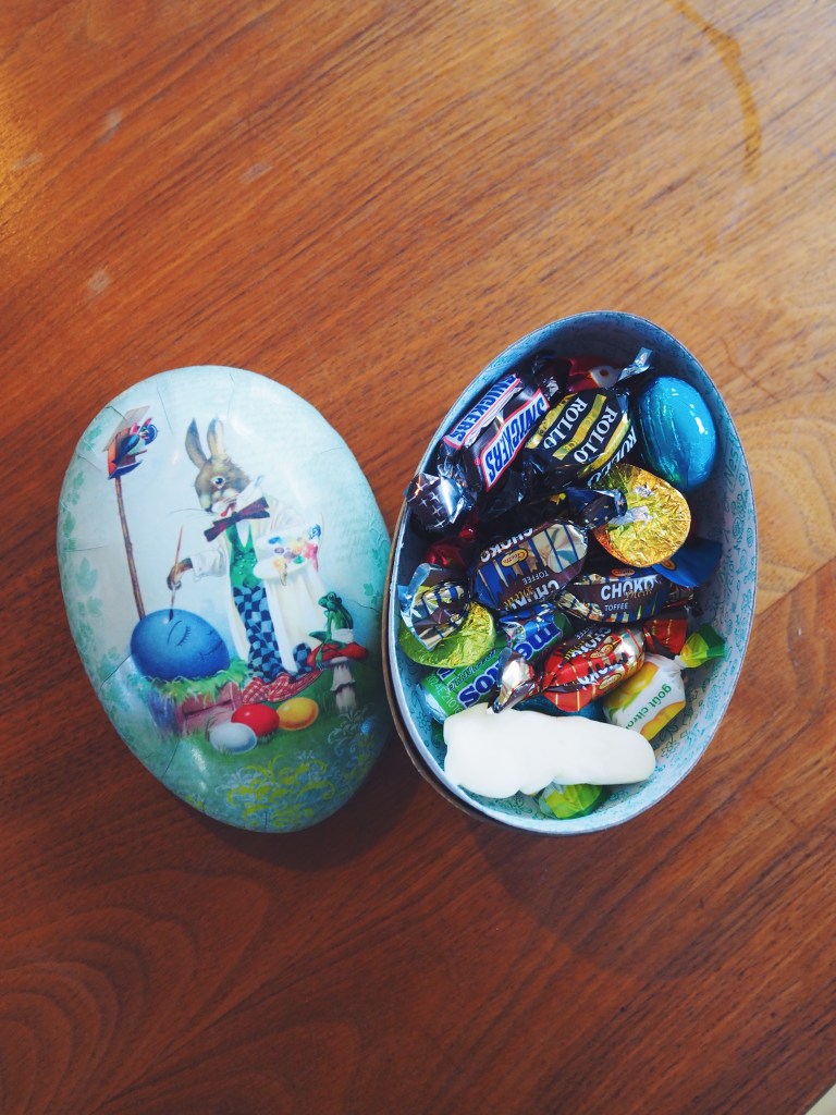 Vi fick påskägg och bebisen fick en liten Duplolåda med en enhörning. Blir perfekt sedan!
