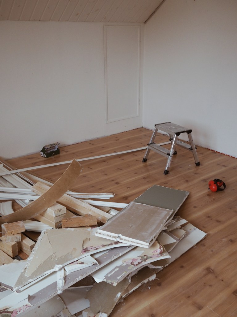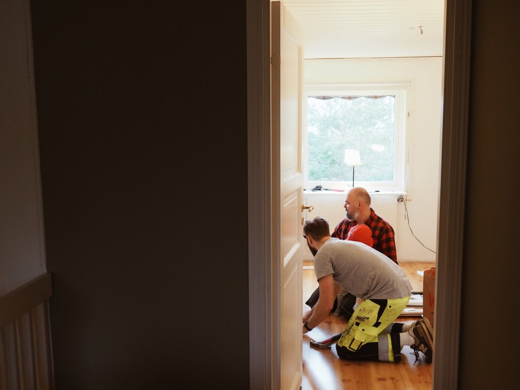 I helgen kom vi äntligen igång med att fixa sovrummen på vår övervåning! Det var vi planerat att göra sedan vi flyttade in för drygt två år sedan, men fått prioritera annat. Nu när Nils börjar bli lite äldre och framför allt fyllt år, vilket har genererat en stor mängd leksaker, har hans behov av ett eget rum aktualiserats. Vi är helt enkelt lite trötta på att inte kunna gå i vardagsrummet för att vi inte har någonstans att lägga undan hans saker. Tanken är att vi ska göra iordning två sovrum på övervåningen, ett till oss och ett till honom.