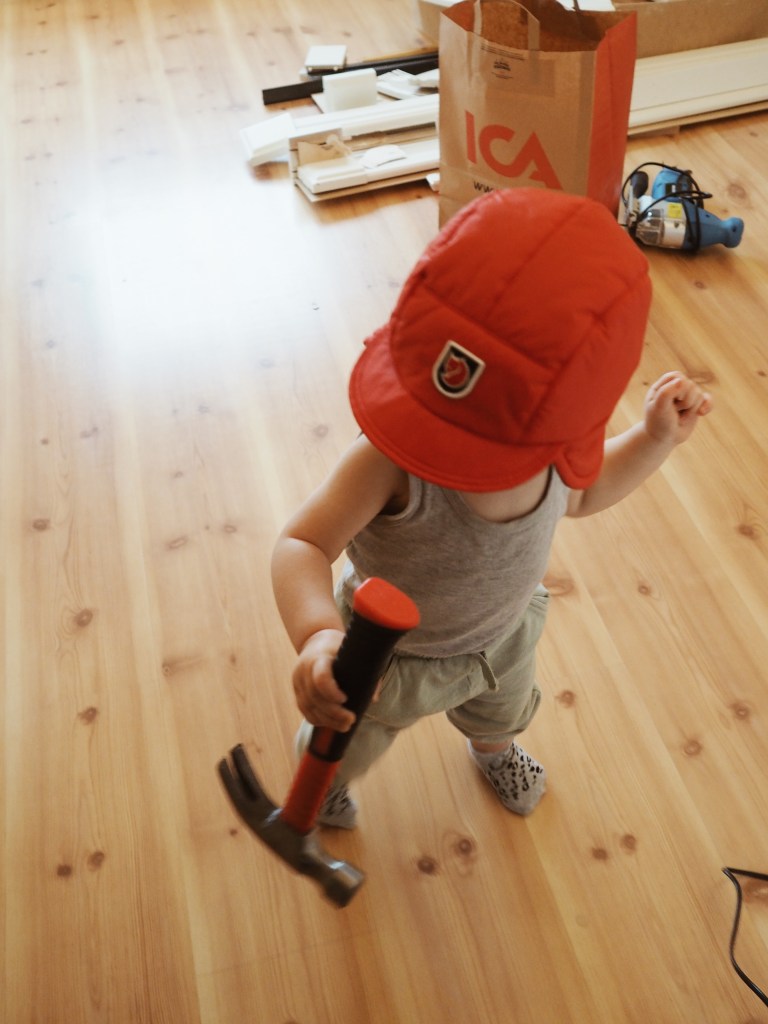 I helgen hann vi, eller ja, mest Pelle och min pappa, ta bort valvet och förbereda för att regla upp, och ta upp dörröppningen. En ser redan nu att det kommer bli ungefär tusen gånger bättre än vad det har varit. I veckan ska vi åka och handla material, och med lite tur kommer vi hinna göra en del kommande helg också. När vi väl har börjat med ett projekt blir vi ibland lite väl otåliga, och vill bli klara nu nu NU. Den här gången får vi kanske öva upp vårt tålamod något, med tanke på att vi har ett barn som behöver omvårdnad samtidigt.