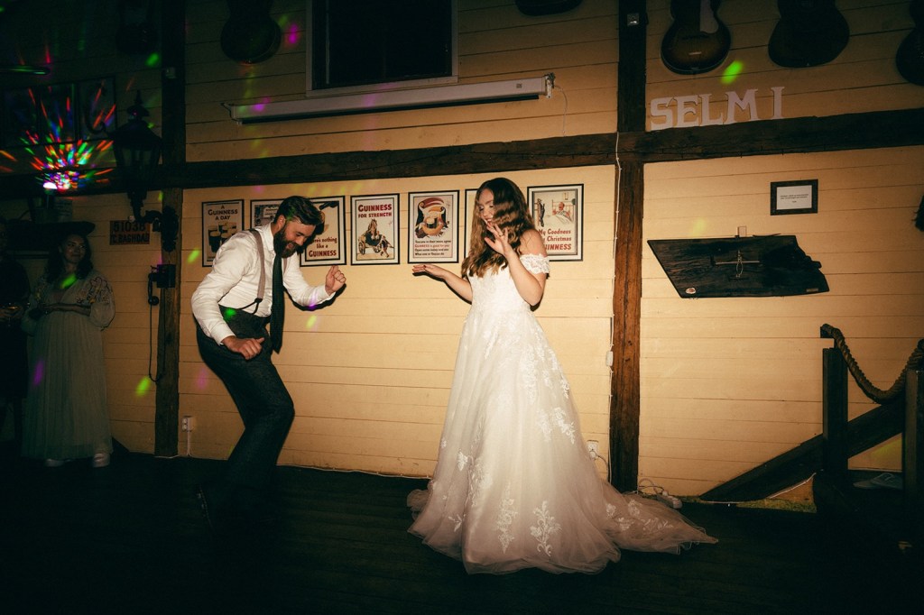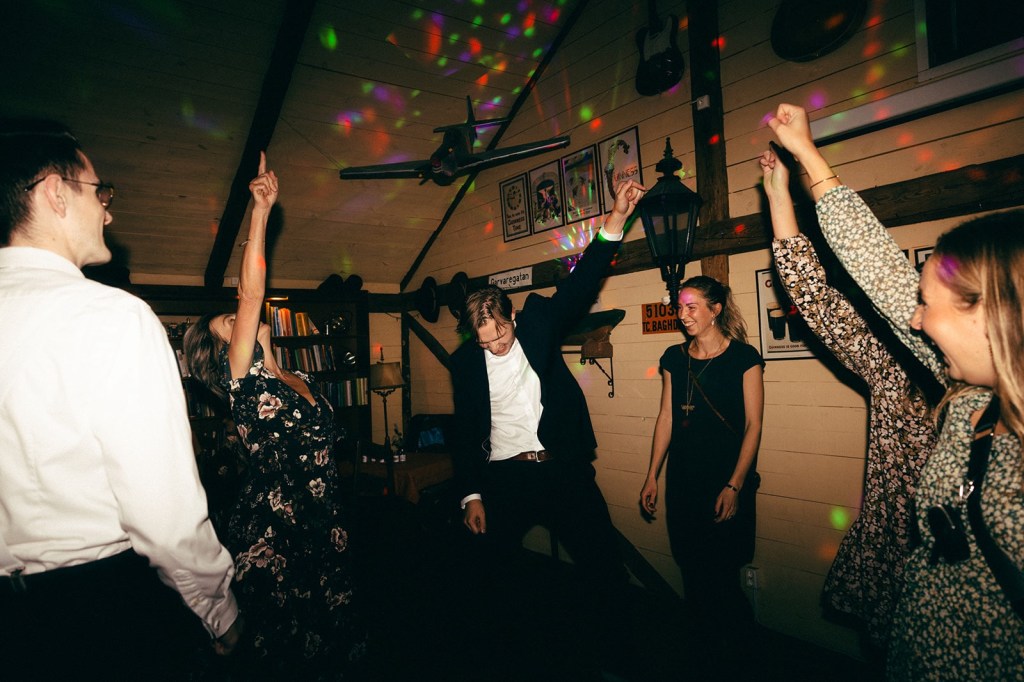 Folk drog på sig ”dansskorna”, aka tofflor från IKEA, och dansgolvet kom igång! Det var också något som var viktigt för både mig och Pelle – ett bra dansgolv. Och jag kan inte komma ihåg att det var tomt en enda gång? Jag hade jobbat stenhårt med Spotifylistan, och den fungerade bra. Mycket schlager, nostalgi och guilty pleasures är nödvändigt för att folk ska dansa, har jag upptäckt. Du kan inte spela något som kommit ut de senaste 10 åren, då tar folk drick- och kisspauser. Det behöver vara Ruslana, Lena PH, Sarek, Carola och Maskinen.