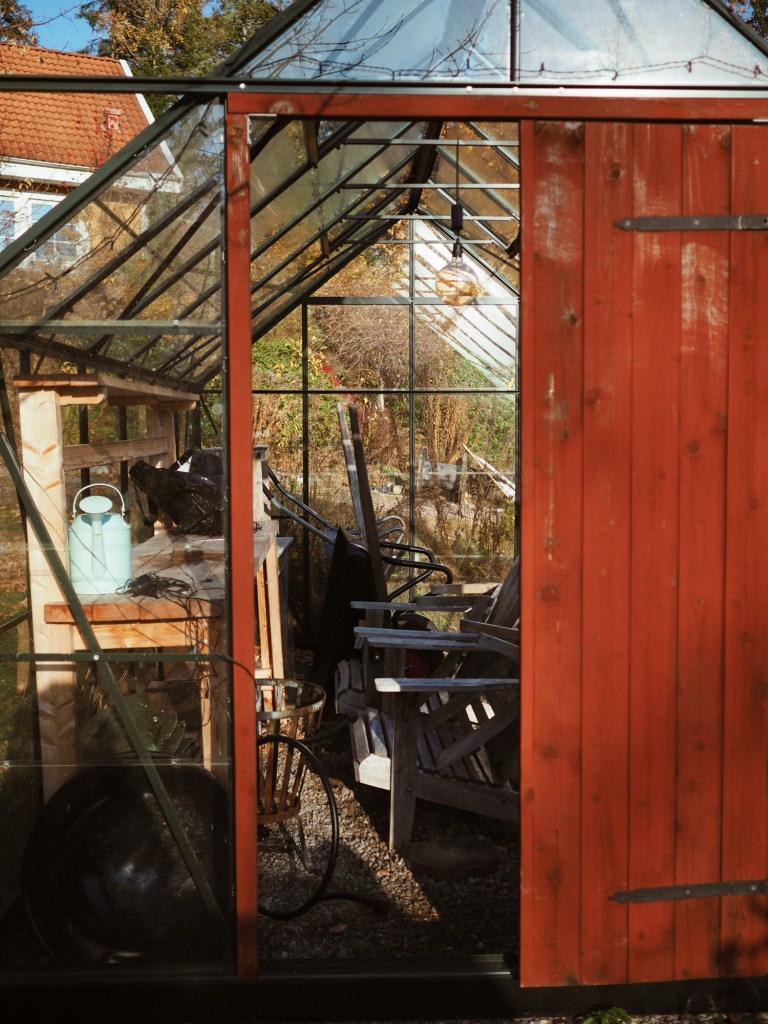 Nu är växthusen stängda för vintern. I alla fall det lilla. Det stora har bara en halv dörr, och saknar typ två glasskivor. Det får åtgärdas nästa år. Det kanske bara är bra, för då har de två knäppa katterna som vägrar använda kattluckan någonstans att ta sin tillflykt när det stormar.