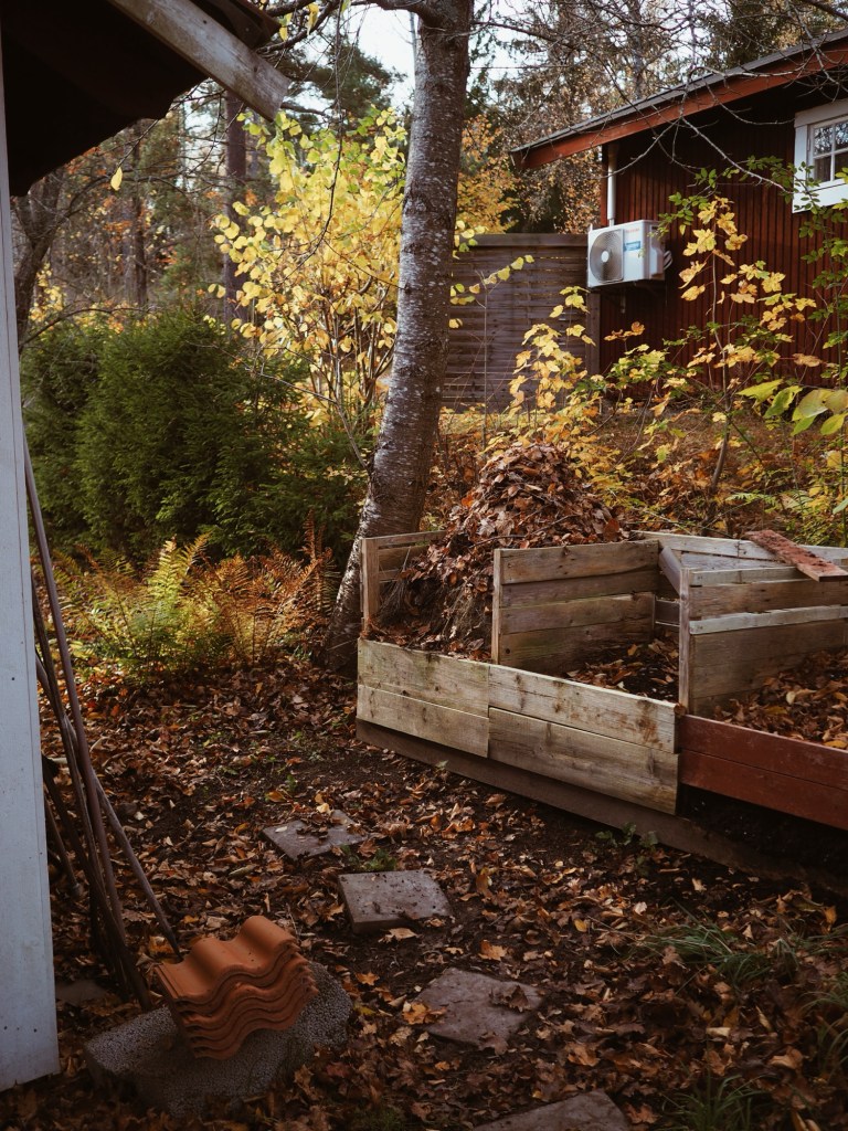 Innan vi började fylla sopsäckar med löv fyllde vi komposten. Och ja, jag är medveten om att det där blåser bort så fort det kommer en liten vindpust, men vad skulle vi göra då?