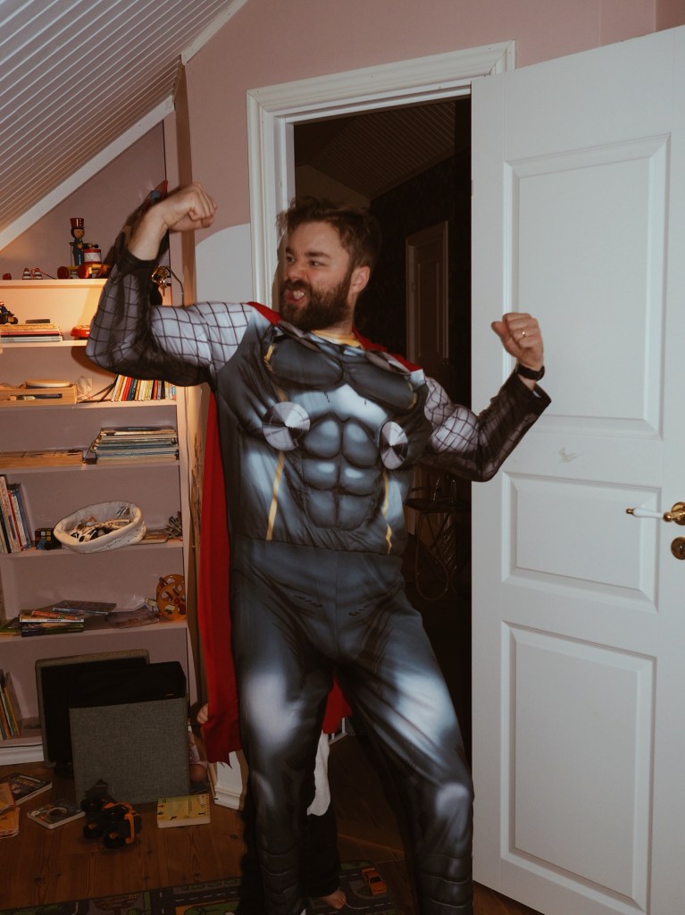 Hemma åkte kostymerna på! En katt, Pikachu, Thor och Captain Marvel. Jättefina var vi, såklart, och jättesatsigt för att typ äta potatis- och purjolökssoppa med familjen. Men det är lite kul tycker jag, att göra det till en fest, även om man inte ska göra något speciellt.