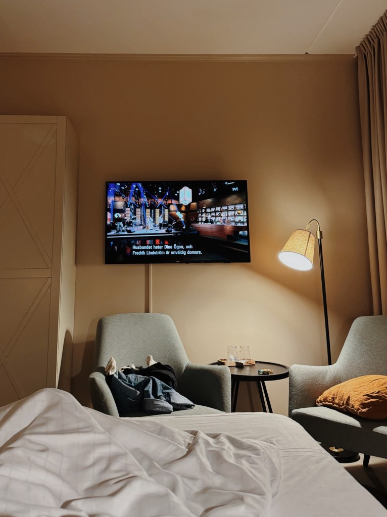 I 30-årspresent av min svärfar fick jag ett presentkort på en hotellnatt med tillhörande hotellfrukost. Jag kom på lite sent att det var ett års giltighetstid på det presentkortet, vilket innebar, på grund av vår hysteriska novembermånad, att vi hade en natt på oss. Som tur var fanns det ett ledigt rum på Åtellet i Norrtälje den natten, och min syster och hennes sambo, våra hjältar, kunde ta barnen över natten.
