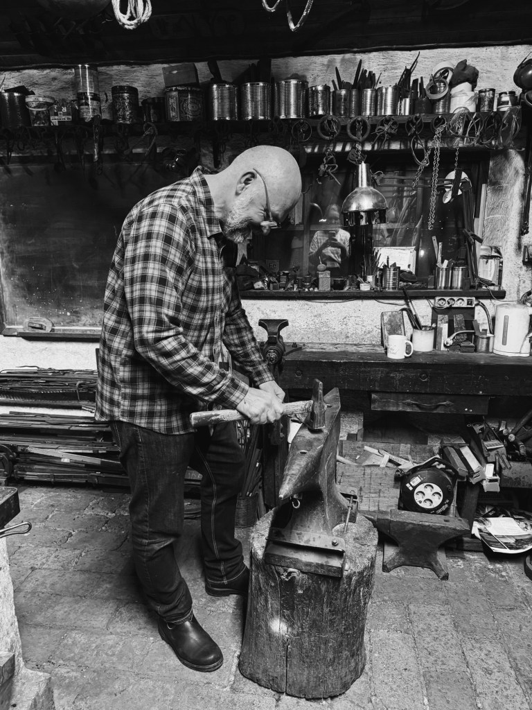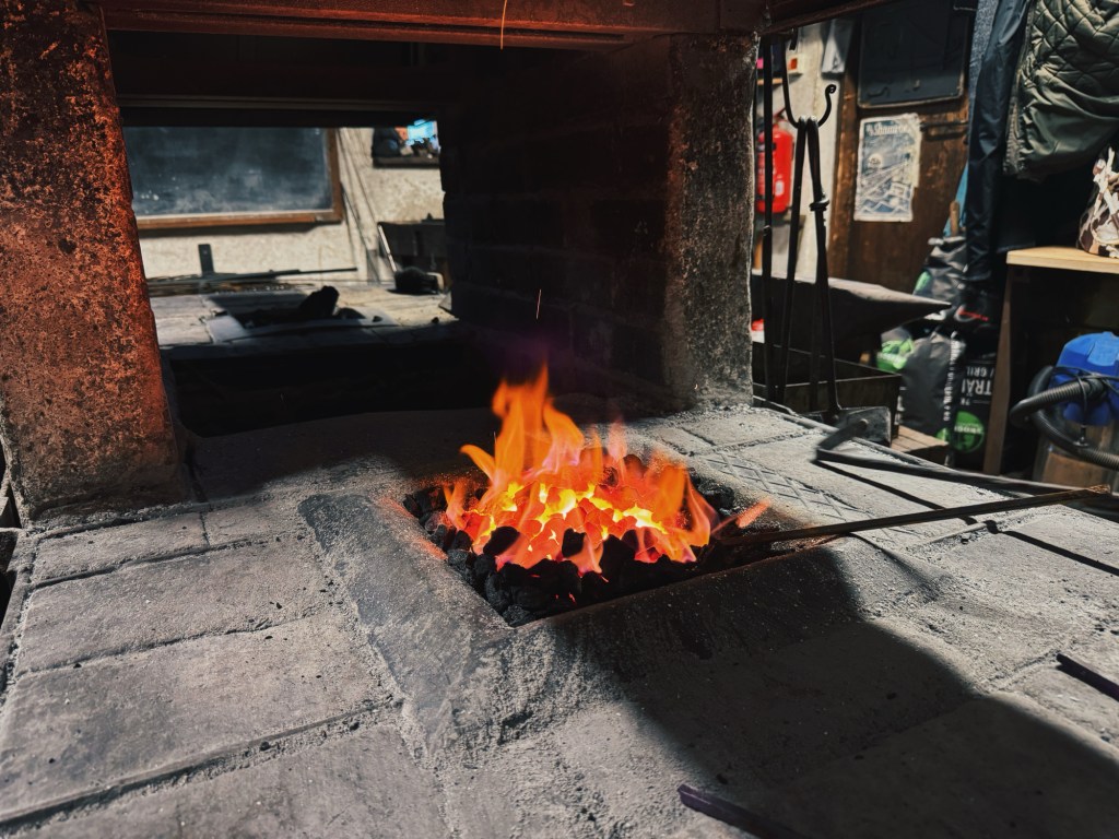 Sedan fick vi testa på traditionellt smide, som min bror jobbar med och lär ut. Det var fruktansvärt fruktansvärt svårt och precis lika roligt som det var svårt. Vilken grej! Att få skapa någonting med sina egna händer, någonting som från början bara var en bit järn blev efter många långa minuters hamrande och svärande och värmande en lite finare bit järn (och okej, det blev användbart också).