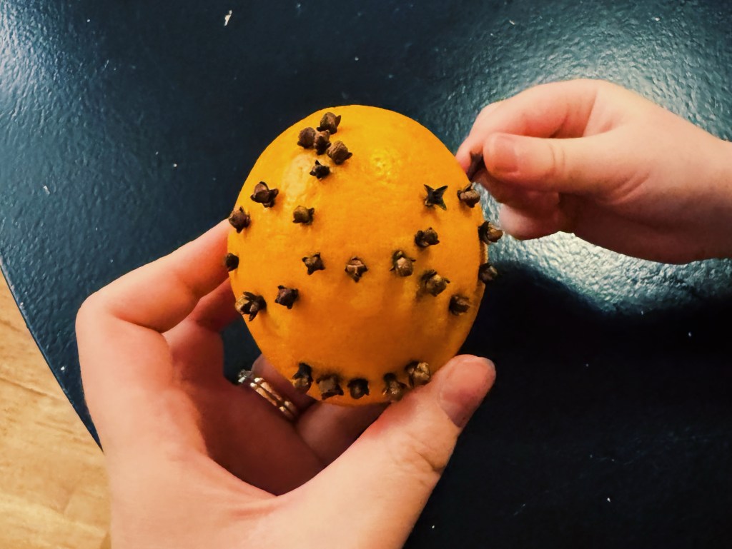 Däremot lyckades jag med årets nejlike-Potter. Varje år gör jag en Harry Potter-apelsin med nejlikor och ställer någonstans för allmän beskådan. Årets Potter blev extra fin med lite hjälp från Nils.