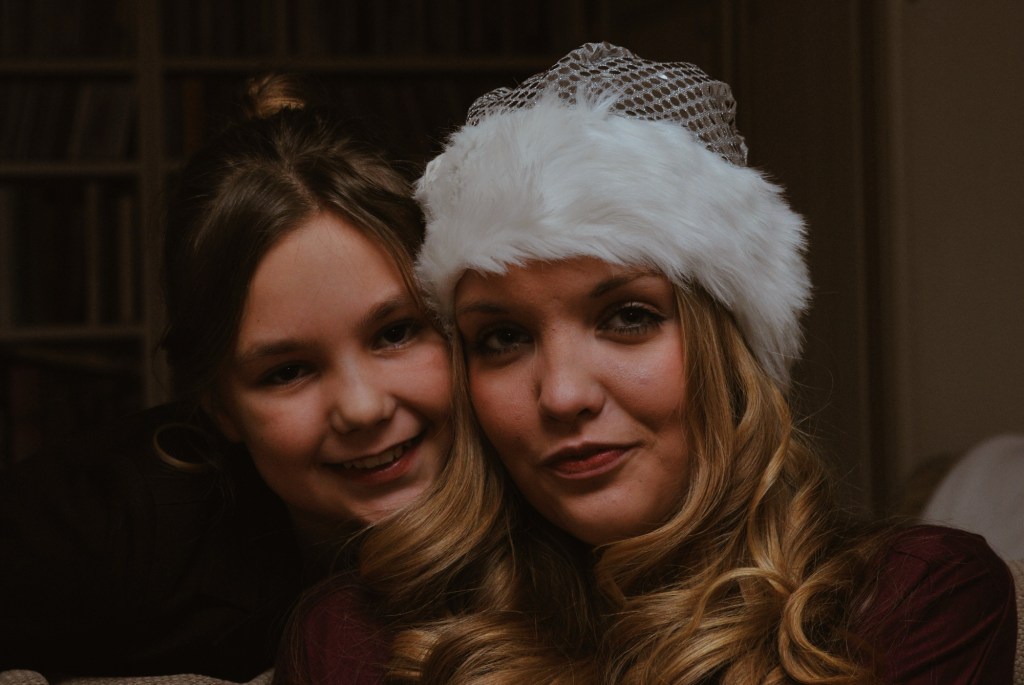 Vi har turats om att vara jultomte. Här gjorde min syster jobbet, med stort allvar.