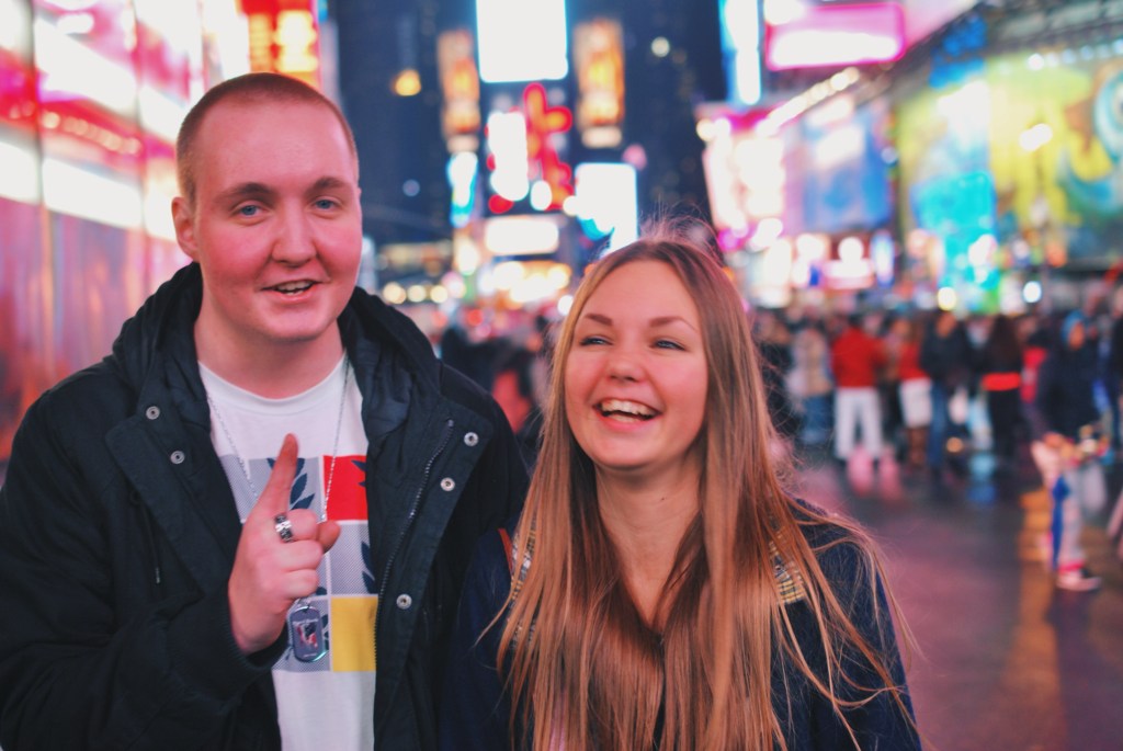 Mina syskon på Times Square på julafton bland en miljon andra turister. Vi väntade här på våra föräldrar som var inne i någon butik och skulle köpa gud vet vad.