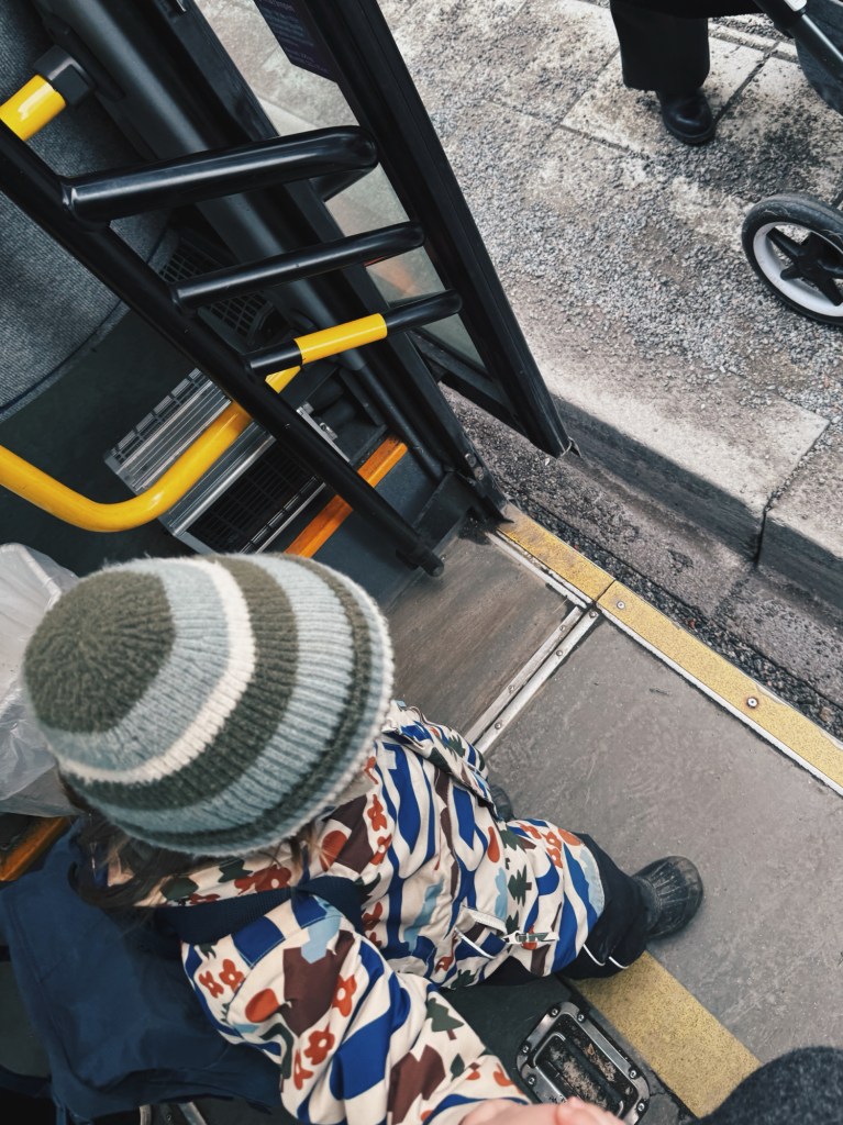 Vi lämnade av storebrorsan hos min syster och tog bussen tillsammans. Märta förstod inte alls storheten i att få följa med mamma till jobbet och var jättearg, för hon älskar min syster och ville också vara där, så hon pratade inte med mig på hela vägen. Hon satt bara och buttert tittade ut genom fönstret. Men när vi kom fram och hon fick kliva ur vagnen och börja utforska mitt kontor verkade hon förstå att hon faktiskt skulle iväg på äventyr idag.