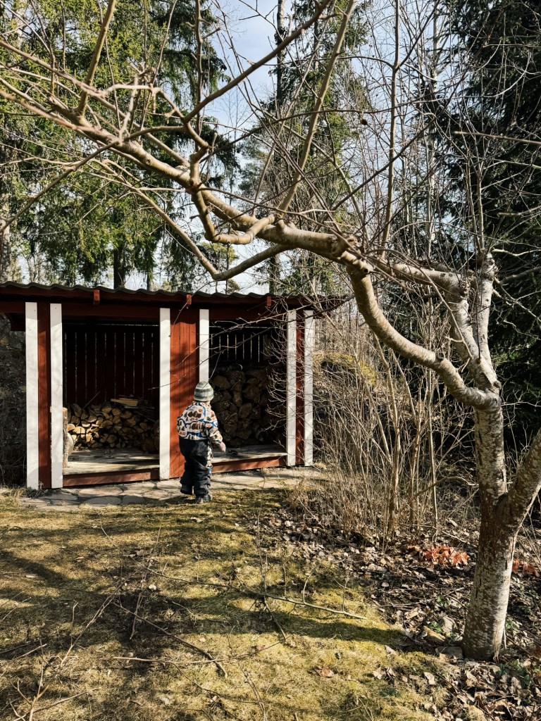 Jag och Nils har beskurit äppelträden. Jag klippte och Nils bar grenar till vår elda-i-höst-hög. Bra arbetsfördelning.