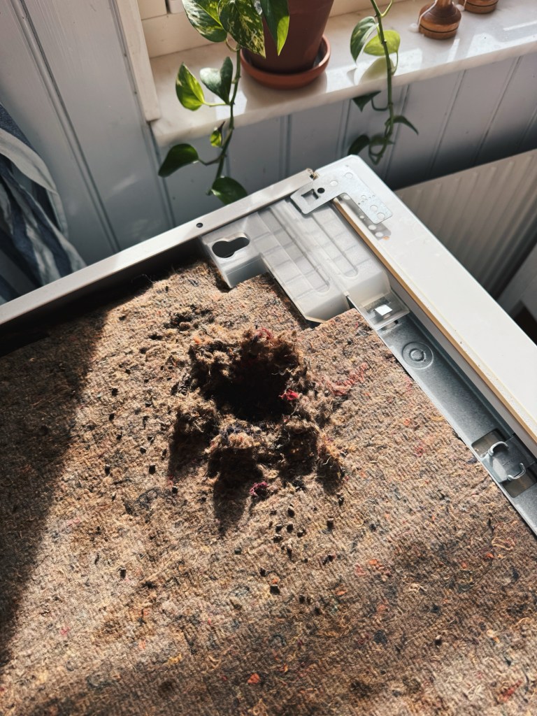 Sedan vi flyttade in har vi känt en konstig lukt vid diskmaskinen och skåpen runtomkring. Lukten har blivit extra stark när diskmaskinen har kört och när det har varit varmt har det ibland inte gått att andas genom näsan nära maskinen. Nu när vår diskmaskin gick sönder och vi skulle byta ut den upptäckte vi varför. Ett musbo med mängder av kiss och bajs. Mmmmm, mysigt. Vi tackar oss själva varje dag för våra tre katter.