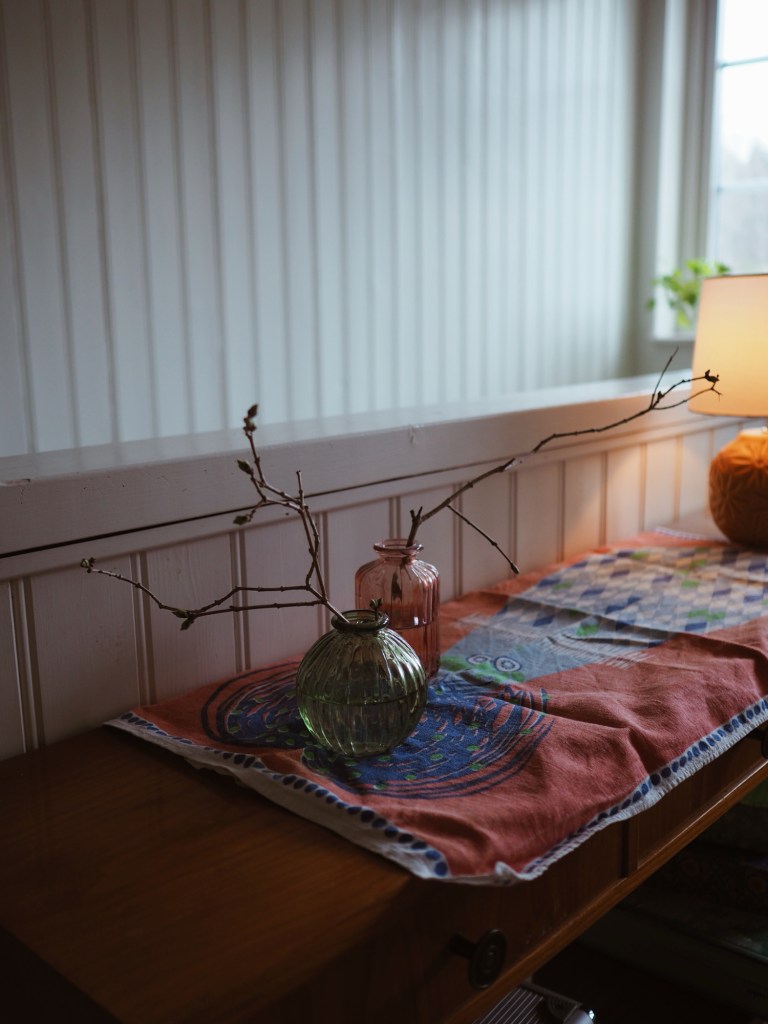 I söndags blev jag lämnad alldeles ifred när min man tog med sig barnen och åkte ut till farmors landställe över dagen. En lagom dag hade varit att få lite småplock fixat och sedan fått läsa bok i badkaret i tystnad, men jag tror att jag inte satt ned mer än ett par minuter under alla timmar de var borta. Och det är inget skryt, det är ren chock. Jag tog disk och tvätt och bytte lakan och städade och vädrade täcken och vattnade blommor och rensade kattlådan och tog ut soporna och plockade in kvistar och hade kanske ett och annat framträdande i vardagsrummet med sekatören som mikrofon. Men framför allt så fick jag påskpynta och vårfixa huset.