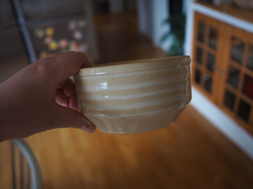 En beige (gul?) skål som jag tänker ha påskgodis i till helgen.