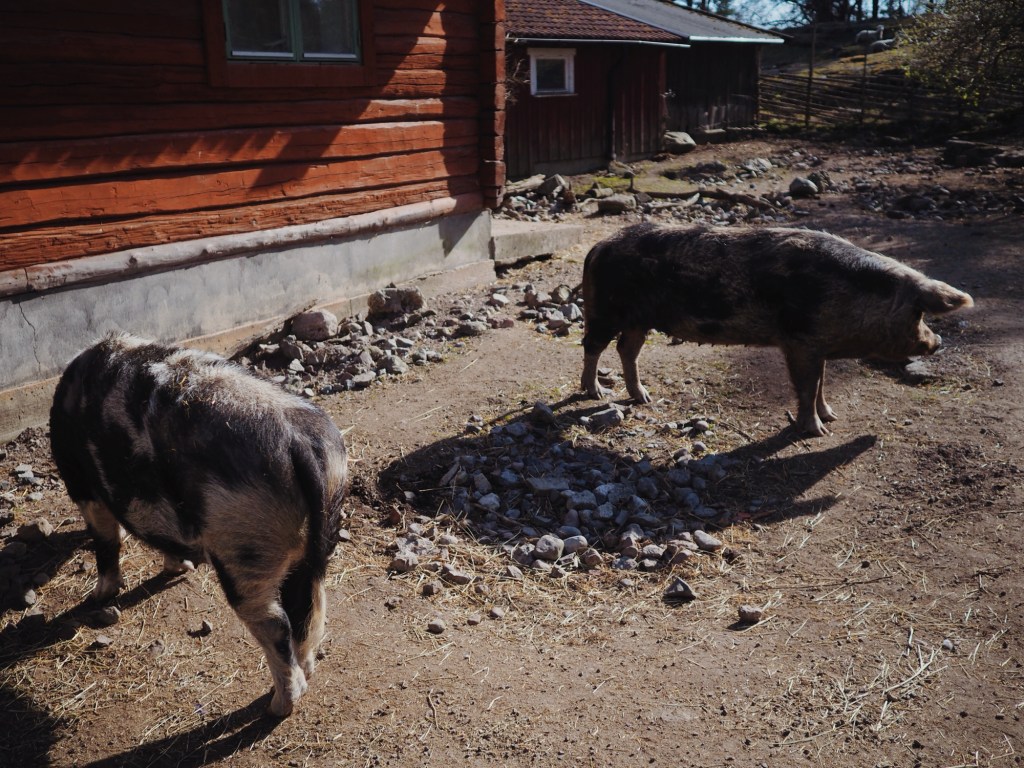 Så vi sa hej till grisarna och hästarna och sedan åkte vi hem.