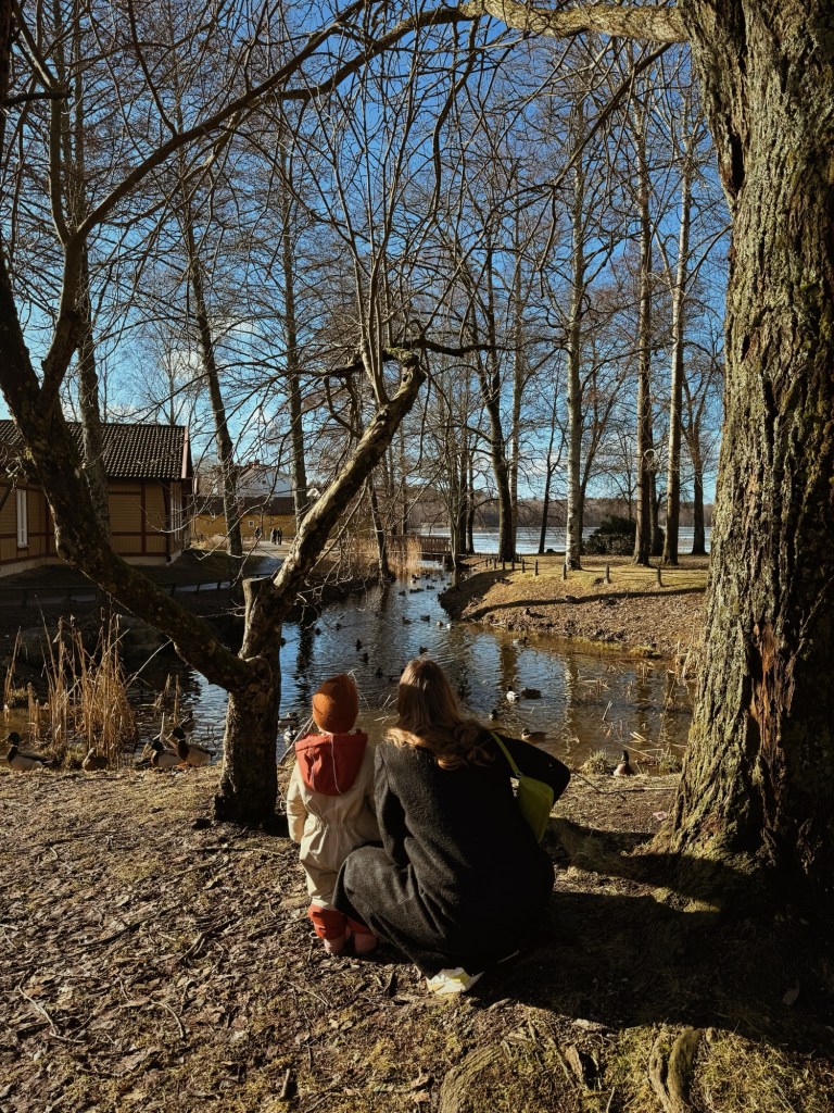Alla utställningar vi såg efter Födas och att föda (alltså resten av utställningarna på Fotografiska) kändes liksom lite onödiga. Allt var platt efter de där starka känslorna. Såhär några dagar i efterhand kan jag tänka tillbaka och tycka att utställningen med Feng Li’s bilder (White Nights in Wonderland) också var bra, men där och då var det mest en plats att diskutera förlossningsbilderna på. Vi tog dock ett varv på hela museet innan vi begav oss. Utanför såg det ut som en tavla, med oktobersolnedgången som lyste upp de gula och röda träden på Skeppsholmen och Djurgården.