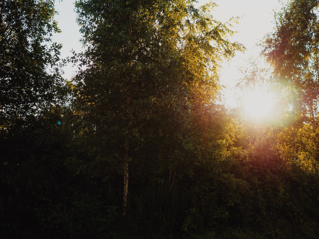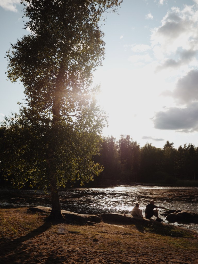 Stugan låg precis vid Klarälven och solnedgången låg vackert över björkarna.